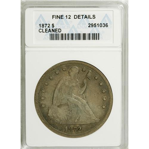 1872 $1 --Cleaned--ANACS. Fine 12 Details. NGC Cens