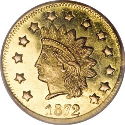 1872 $1 Indian Round , BG-1207, R.4, MS63PL
