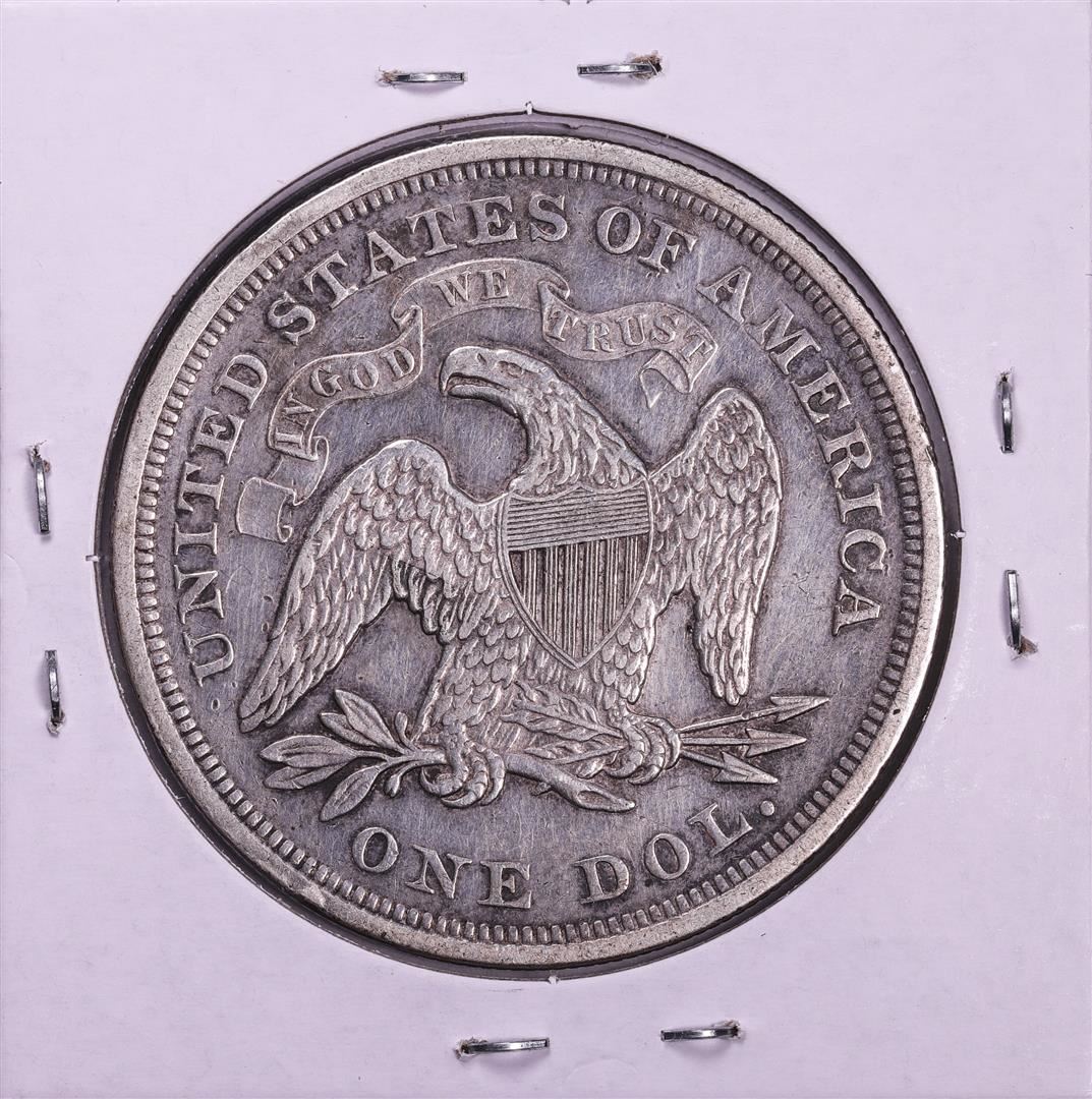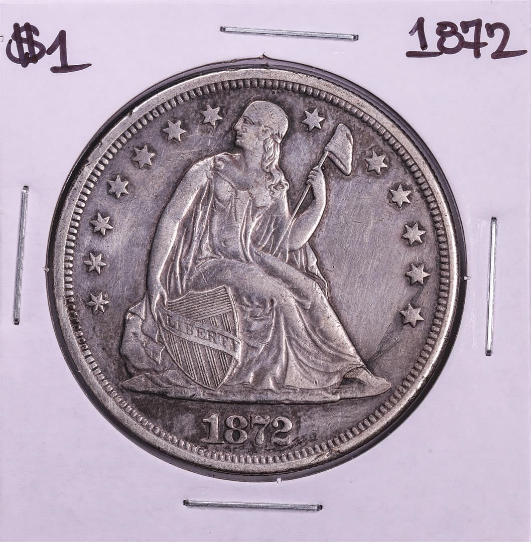 One 1872 $1 Seated Liberty Half Dollar Coin.