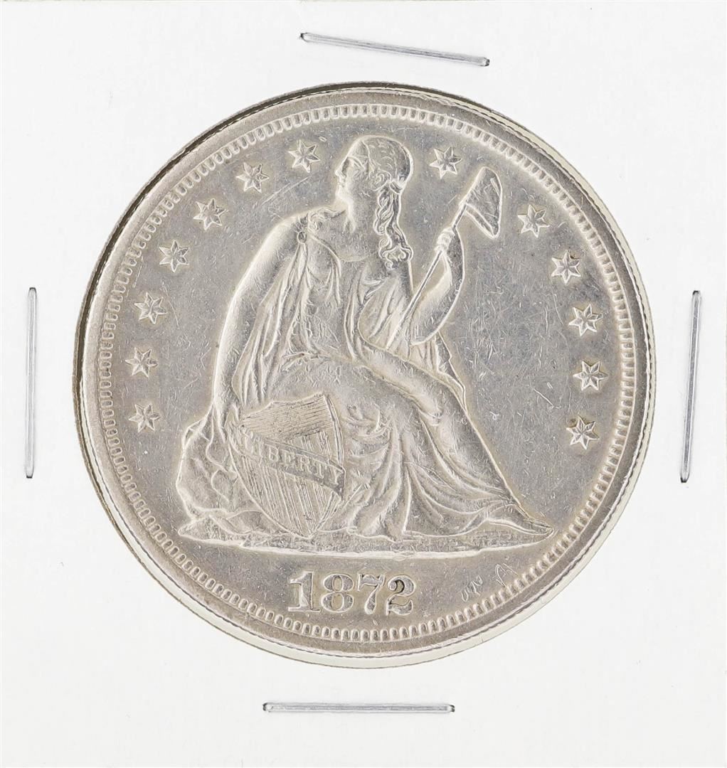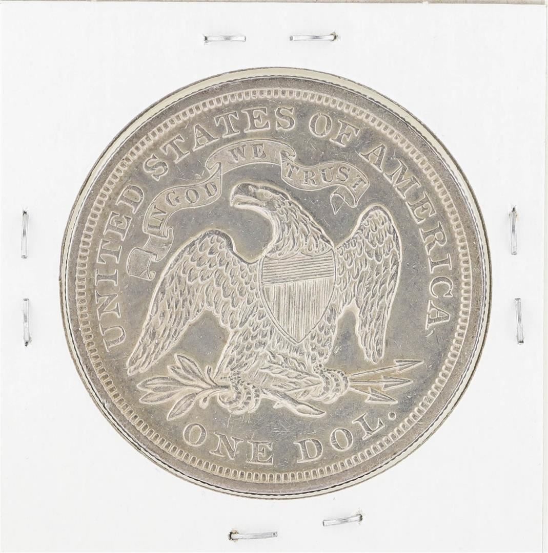 One 1872 $1 Seated Liberty Silver Dollar Coin.
