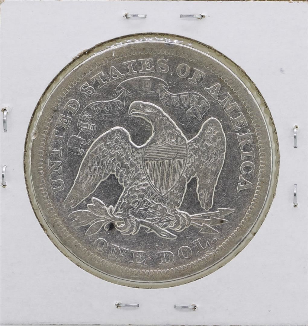 One 1872 $1 Seated Liberty Silver Dollar Coin.