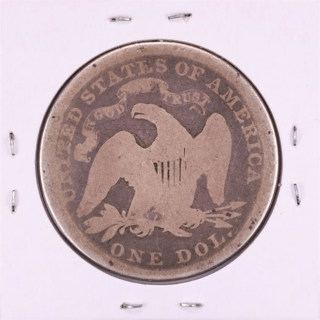 One 1872 $1 Seated Liberty Silver Dollar Coin.