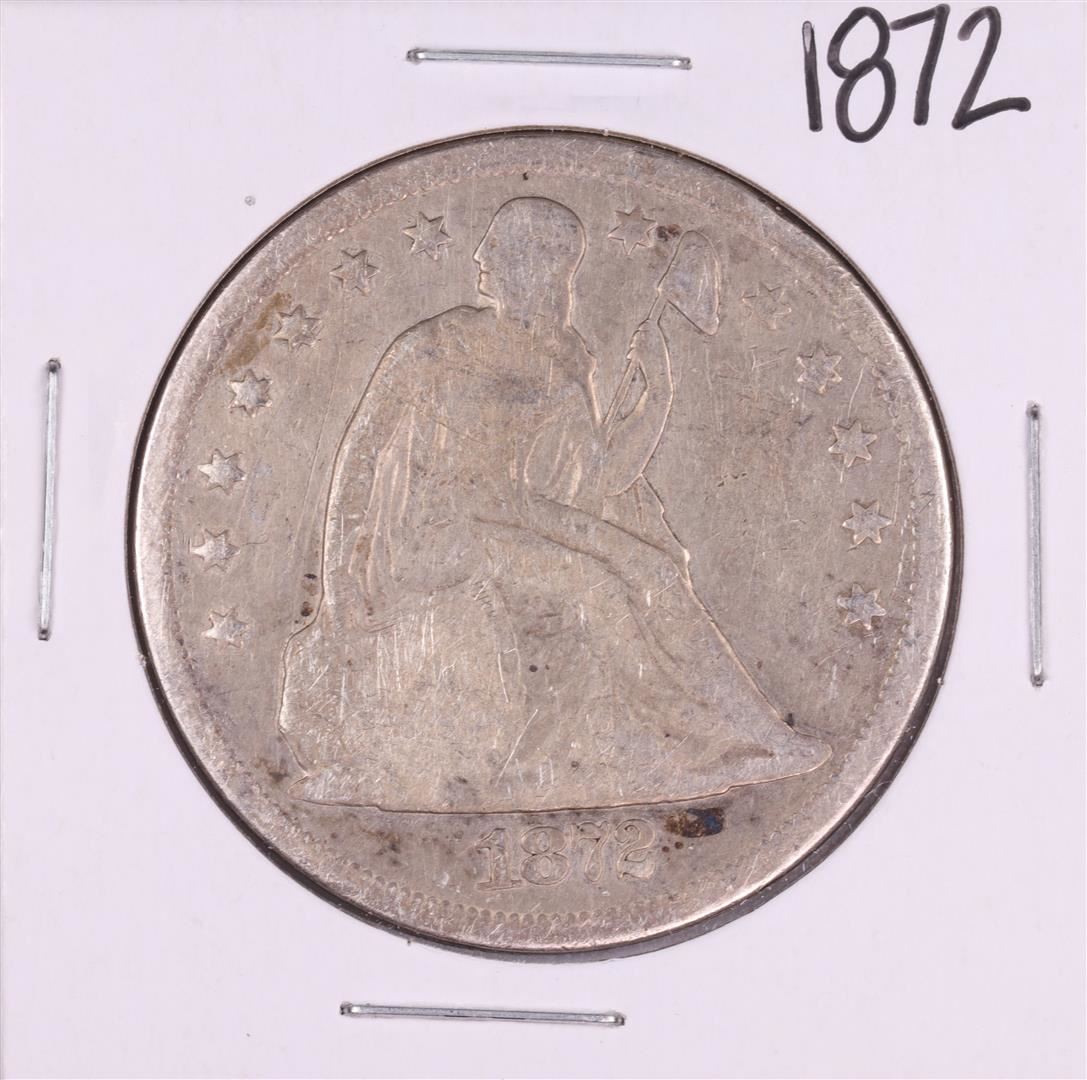 One 1872 $1 Seated Liberty Silver Dollar Coin.