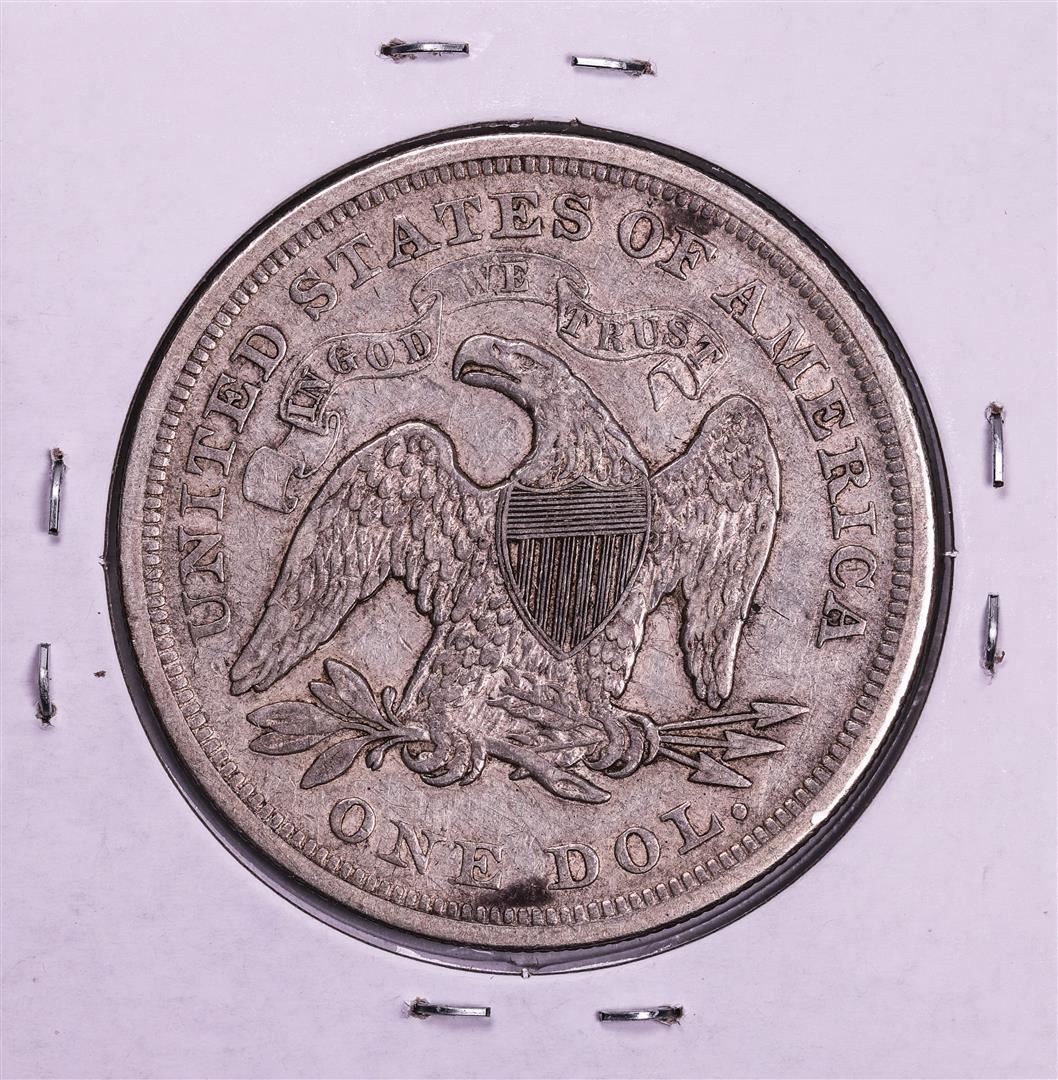 One 1872 $1 Seated Liberty Silver Dollar Coin.