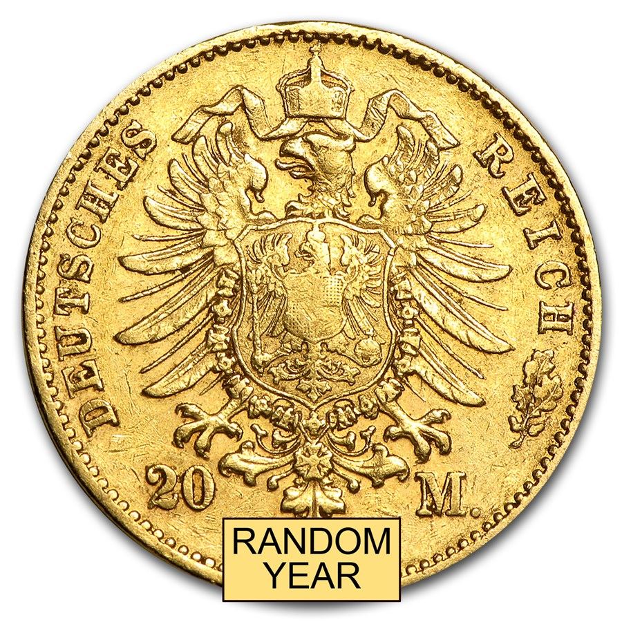1872-1878 Germany Gold 20 Mark Bavaria Ludwig II Avg Circ