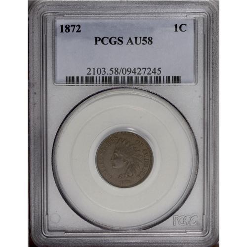 <B>1872<1C> AU58 PCGS.</B></I> This better date cent displays light brown patina with bluish accents. The design elements re nicely defined, including clarity on three and one-half diamonds. The surfaces are remarkably clean.