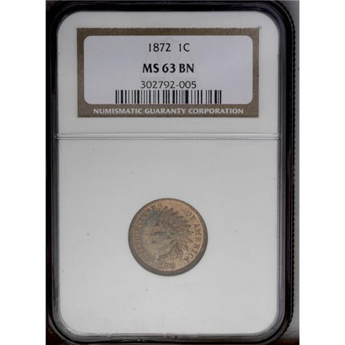 1872 1C MS63 Brown NGC. This satiny semi-key Indian ce 1872[1C] MS63 Brown NGC.