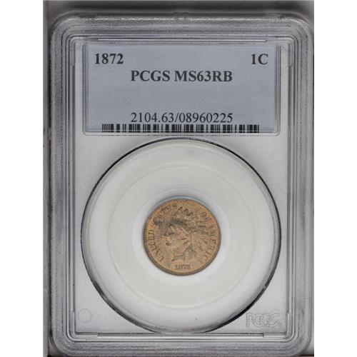 1872 1C MS63 Red and Brown PCGS. An attractive mid-Min 1872[1C] MS63 Red and Brown PCGS.