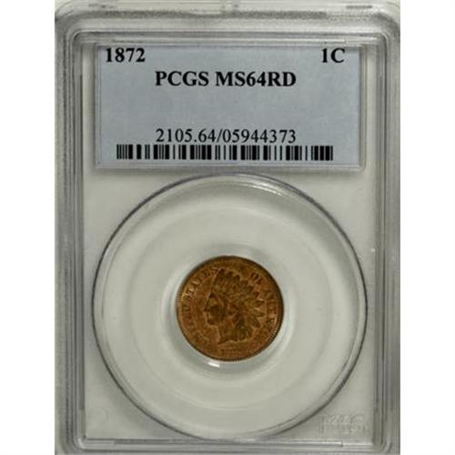 <B>1872 1C MS64 Red PCGS.</B></I> The reverse has slight peripheral weakness as often seen on this date. The surfaces are brilliant with faint mellowing of the red mint luster. Examples of this issue are infrequently encountered in the marketplace, and most of those that do make an appearance are lower quality. An extremely important opportunity for the advanced collector. Population: 45 in 64 Red, 15 finer (8/07).<BR><BR><B>Coin Engraver:</B> James B. Longacre<BR><BR><b>Shipping:</b> Coins & Currency (<a target="_blank" href="http://www.heritageauctions.com/common/shipping.php">view shipping information</a>)