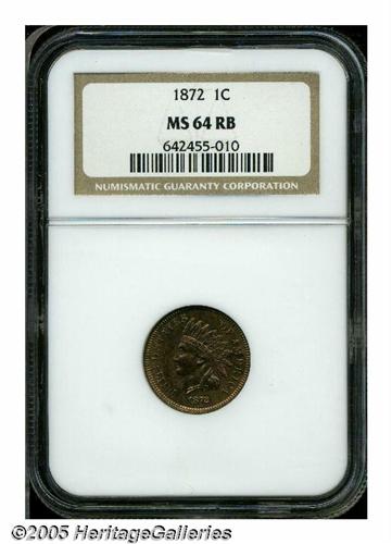 <B>1872<1C> MS64 Red and Brown NGC.</B></I> Appealing violet-red example with nice luster and virtually problem free surfaces.