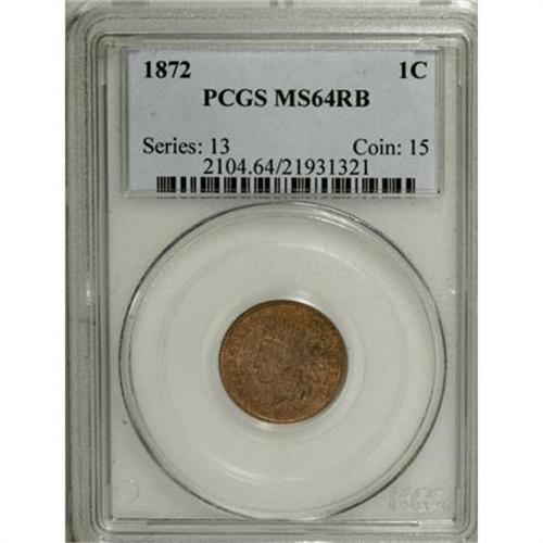 <B>1872 1C MS64 Red and Brown PCGS.</B></I> Both sides exhibit a blend of reddish-orange and copper, while the right obverse periphery shows a measure of chocolate-brown as well. Well-defined with a small area of grade-defining abrasions to the left of the portrait.<BR><BR><B>Coin Engraver:</B> James B. Longacre<BR><BR><b>Shipping:</b> Coins & Currency (<a target="_blank" href="http://www.heritageauctions.com/common/shipping.php">view shipping information</a>)