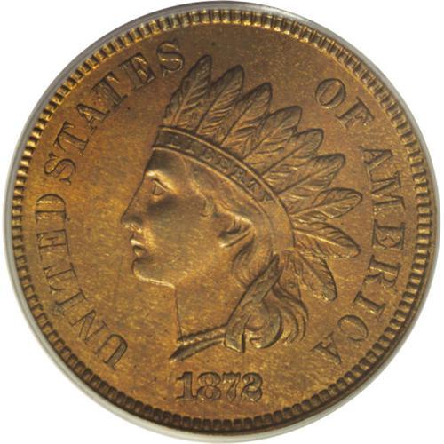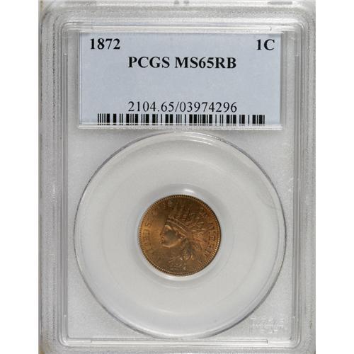 <B>1872 1C MS65 Red and Brown PCGS.</B></I> Indian Head cent specialist Richard Snow (2006) writes that the 1872 cent: "Aside from the 1877 ... is the toughest date to find today. ... Most coins of this date are streaky due to uneven alloy mixes. Many examples were poorly struck or found with missing detail due to some liquid, such as machine oil or water, getting on the planchet or dies." The Red and Brown Gem presented in this lot deviates from the above profile. Even copper-tan patination occupies lustrous surfaces on each side. With the exception of slight weakness in the upper right part of the shield, the design elements are sharply struck, including strong definition on all four diamonds. No significant abrasions or unsightly spots are apparent. Population: 66 in 65 Red and Brown, 5 finer (2/07).<BR><BR><b>Shipping:</b> Coins & Currency (<a target="_blank" href="http://www.heritageauctions.com/common/shipping.php">view shipping information</a>)