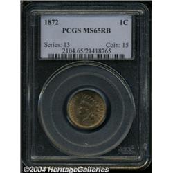 <table><tbody><tr><td><table> <TR><TD width="100%"><TABLE cellSpacing=1 cellPadding=3 width="100%" border=0><TBODY><TR><TD width="100%" bgColor=#79735c><FONT face=arial color=#ffffff size=3><B>Description</B> </FONT></TD></TR><TR><TD width="100%" bgColor=#ffffff><FONT face=arial size=2><B>1872 1C MS65 Red and Brown PCGS.</B></I> An elusive post-Civil War bronze cent, the 1872 is elusive in all grades, and particularly so at the Gem level of preservation. The mottled orange, russet, and red-gold patina that adheres to each side of this coin impart an interesting wood-grain appearance. The design details are sharply struck throughout, and vibrant luster shines through the attractive original patina. There are virtually no surface marks of post-strike origin, and only a few faint die cracks and clash marks (as struck) are evident. Population: 37 in 65, 3 finer (10/03). </FONT></TD></TR></TBODY></TABLE></TD></TR></TBODY></TABLE><BR><A name=PricesRealized></A><TABLE cellSpacing=0 cellPadding=0 width="100%" bgColor=#000000 border=0><TBODY><TR><TD width="100%"><TABLE cellSpacing=1 cellPadding=3 width="100%" border=0><TBODY><TR><TD width="100%" bgColor=#79735c><A name=PR><FONT face=arial color=#ffffff size=3><B>Previous Prices from Heritage Auctions</B> </FONT></A></TD></TR><TR><TD bgColor=#f6f6ed><TABLE cellSpacing=0 cellPadding=0 width="100%" border=1><TBODY><TR><TD align=middle width="33%"><B>Date</B></TD><TD align=middle width="33%"><B>Service</B></TD><TD align=middle width="33%"><B>Price</B></TD></TR><TR bgColor=whitesmoke><TD width="33%"><B>11/25/2003</B></TD><TD width="33%">NGC</TD><TD width="33%">$2,415.00</TD></TR><TR bgColor=whitesmoke><TD width="33%"><B>01/11/2003</B></TD><TD width="33%">NGC</TD><TD width="33%">$3,220.00</TD></TR><TR bgColor=whitesmoke><TD width="33%"><B>09/28/2002</B></TD><TD width="33%">PCGS</TD><TD width="33%">$2,990.00</TD></TR><TR bgColor=whitesmoke><TD width="33%"><B>11/15/2001</B></TD><TD width="33%">NGC</TD><TD width="33%">$2,530.00</TD></TR><TR bgColor=whitesmoke><TD width="33%"><B>05/31/2001</B></TD><TD width="33%">NGC</TD><TD width="33%">$2,472.50</TD></TR><TR bgColor=whitesmoke><TD width="33%"><B>01/10/1998</B></TD><TD width="33%">NGC</TD><TD width="33%">$2,300.00</TD></TR><TR bgColor=whitesmoke><TD width="33%"><B>05/27/2001</B></TD><TD width="33%">NGC</TD><TD width="33%">$2,645.00</TD></TR><TR bgColor=whitesmoke><TD width="33%"><B>11/01/1995</B></TD><TD width="33%">NGC</TD><TD width="33%">$1,155.00</TD></TR><TR bgColor=whitesmoke><TD width="33%"><B>05/01/1999</B></TD><TD width="33%">PCGS</TD><TD width="33%">$3,680.00</TD></TR><TR bgColor=whitesmoke><TD width="33%"><B>11/01/1997</B></TD><TD width="33%">PCGS</TD><TD width="33%">$2,090.00</TD></TR></TBODY></TABLE></TD></TR><TR><TD bgColor=#ffffff><FONT face=arial size=1 ?>PLEASE NOTE: All prices realized reflect the final hammer price PLUS the buyer's premium in auctions that charge a buyer's premium. Each item has a notation at the top of the listing indicating whether that lot included a buyer's premium. Example: A item that sells with a final hammer price of $100 and a 20% buyer's premium will display with a price realized of $120. All information listed is intended to be as accurate as possible, but errors are possible. Please use this guide carefully and inform us of any inaccuracies. </FONT></TD></TR></TBODY></TABLE></TD></TR></TBODY></TABLE><BR><TABLE cellSpacing=0 cellPadding=0 width="100%" bgColor=#000000 border=0><TBODY><TR><TD width="100%"><TABLE cellSpacing=1 cellPadding=3 width="100%" border=0><TBODY><TR><TD width="100%" bgColor=#79735c colSpan=6><FONT face=arial color=#ffffff size=3><B>Price Guide*</B> </FONT></TD></TR><TR bgColor=#f6f6ed><TD align=middle><B>Grade</B> </TD><TD align=middle><B>Coin World<BR>(Trends)</B> </TD><TD align=middle><B>Numismedia<BR>Retail</B> </TD><TD align=middle><B>Numismedia<BR>Wholesale</B> </TD><TD align=middle><B>Coin<BR>Universe</B> </TD><TD align=middle><B>Heritage<BR>Value Index</B> </TD></TR><TR bgColor=#ffffff><TD align=middle>64</TD><TD align=right>$1,500.00</TD><TD align=right>---</TD><TD align=right>$975.00</TD><TD align=right>$2,200.00</TD><TD align=right>$1,116.25</TD></TR><TR style="FONT-WEIGHT: bold" bgColor=#cccfdd><TD align=middle>65</TD><TD align=right>$4,000.00</TD><TD align=right>---</TD><TD align=right>$3,250.00</TD><TD align=right>$5,500.00</TD><TD align=right>$2,840.00</TD></TR><TR bgColor=#ffffff><TD align=middle>66</TD><TD align=right>---</TD><TD align=right>---</TD><TD align=right>$5,775.00</TD><TD align=right>---</TD><TD align=right>---</TD></TR><TR bgColor=#ffffff><TD colSpan=6><FONT size=1>*All information listed is intended to be as accurate as possible, but errors are possible. No item may be returned or refused based on this information which is provided as a service to our customers. You should contact each pricing source directly to determine the accuracy of this information. </FONT></TD></TR></TBODY></TABLE></TD></TR></TBODY></TABLE><BR><TABLE cellSpacing=0 cellPadding=0 width="100%" bgColor=#000000 border=0><TBODY><TR><TD width="100%"><TABLE cellSpacing=1 cellPadding=3 width="100%" border=0><TBODY><TR><TD width="100%" bgColor=#79735c><FONT face=arial color=#ffffff size=3><B>Population Guide</B> </FONT></TD></TR><TR bgColor=#ffffff><TD align=middle><!-- Begin Output of Population Grid--><TABLE cellSpacing=0 cellPadding=0 width="100%" border=0><TBODY><TR><TD vAlign=center><TABLE cellSpacing=0 width="100%" border=1 cellsadding="3"><TBODY><TR><TD vAlign=center><TABLE cellSpacing=0 cellPadding=3 width="100%" border=1><TBODY><TR><TD vAlign=center align=middle bgColor=#f0f1e8 colSpan=2 <CENTER><FONT face=Arial size=2><B>PCGS Pop </B></FONT><CENTER></CENTER></TD><TD vAlign=center align=middle bgColor=#f0f1e8 colSpan=2><CENTER><FONT face=Arial size=2><B>NGC Pop</B></CENTER></FONT></TD></TR><TR><TD vAlign=center><FONT face=Arial size=2>(65)</FONT> </TD><TD vAlign=center align=right><FONT face=Arial size=2>37</FONT> </TD><TD vAlign=center><F