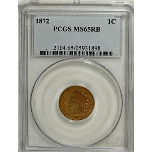 <B>1872 1C MS65 Red and Brown PCGS.</B></I> In addition to having a lower mintage, the 1872 was also melted. These two factors created a semi-key among early Indian cents. This upper-end Gem shows bright surfaces that are mellowed just a bit with significant portions of the original red luster remaining. Sharply struck with slight softness at the top of the feathers in the headdress. <BR><BR><B>Coin Engraver:</B> James B. Longacre<BR><BR><b>Shipping:</b> Coins & Currency (<a target="_blank" href="http://www.heritageauctions.com/common/shipping.php">view shipping information</a>)