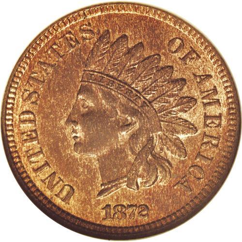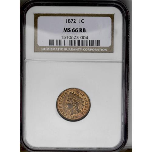 <B>1872<1C> MS66 Red and Brown NGC.</B></I> The 1872 is a well known condition rarity among Indian cent specialists, particularly with any degree of the original luster intact. Both sides of this important Gem display a modest "woodgrain" effect with remnants of golden-red luster peering through medium brown toning. Every feature is sharply brought up, and the noteworthy lack of distracting blemishes is exactly what one should expect for the MS66 designation. NGC and PCGS combined report only 12 coins in MS66 Red and Brown, and there are none finer with this color designation (6/06).