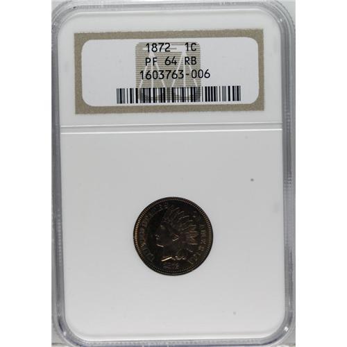 <B>1872 1C PR64 Red and Brown NGC.</B></I> NGC Census: (92/100). PCGS Population (102/67). Mintage: 950. Numismedia Wsl. Price for NGC/PCGS coin in PR64: $500. (#2304)<BR><BR><b>Shipping:</b> Coins & Currency (<a target="_blank" href="http://www.heritageauctions.com/common/shipping.php">view shipping information</a>)