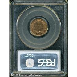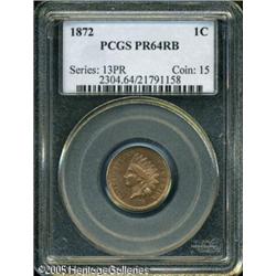 <B>1872 1C PR64 Red and Brown PCGS.</B></I> Sharply struck with full details on the feathertips of the headdress, vibrant luster, attractive red-brown color, and a modest degree of carbon that seems to have prevented the Gem grade assignment from PCGS. Lot:5294