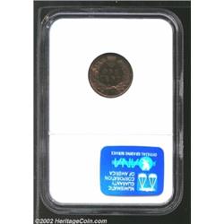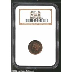 1872 1C PR65 Red and Brown NGC. The obverse has brightly variegated orange and rose-violet patina, w