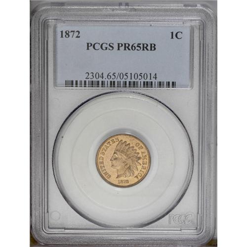 <B>1872<1C> PR65 Red and Brown PCGS.</B></I> The bright orange-red surfaces show a slight overlay of brown on the reverse. A pleasing coin with pinpoint striking definition.