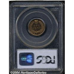 <B>1872<1C> PR65 Red and Brown PCGS.</B></I> Light golden-brown surfaces reveal noticeable contrast between the devices and bright, semi-reflective fields. Exquisitely struck, and no mentionable contact marks or carbon spotting. Population: 54 in 65, 3 finer (7/04). <BR><BR><B>Important notice:</B> Heritage usually auctions material at the rate of 200-250 lots per hour. On some occasions eBay Live bid software or the Internet may not be able to keep up with the pace of the auction. We recommend placing a realistic absentee bid now as insurance to avoid disappointment. Occasionally the auctioneer may eliminate or reject an eBay Live bid, and the auctioneer may also reopen a lot after the close of the eBay live bidding (usually because we missed an audience bid), and may reject your bid even if it shows you as the winning bidder. By bidding via eBay Live, you agree that Heritage may award the lot to another bidder at its sole discretion under the circumstances described above or any other reasonable circumstances. Since eBay bids are not shown to us until we open the lot on the floor, we treat those bids just like floor bids. In most cases the floor responds before the eBay bid is presented to us, due to Internet lag time, so for consistency we have made it a policy that floor bids are always considered first over tie eBay live bids. Also please note that all Heritage lots purchased through eBay Live carry a 20% Buyer's Premium. Please make sure you read the Terms and Conditions before you bid. </span></font></tr></table></td></tr></table>