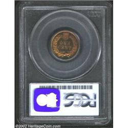 1872 1C PR66 Red PCGS. As the present sale clearly indicates, we have a lot of experience cataloging and auctioning proof 1872 Indian Cents. We have not, however, had the opportunity to examine a PR66 Red specimen since the catalog production period for our 1995 Anaheim ANA Signature Sale. The example in that sale was certified by NGC, and it was offered as lot 5643. The specimen in this lot is simply breathtaking. Fully original olive undertones backlight glistening orange-red color. There is no toning, as befits the Red designation, and bothersome handling marks and carbon flecks are also conspicuous by their absence. Pinpoint striking definition and shimmering, reflective fields confirm this coin's proof status; they also round out the list of positive attributes and enhance the already noteworthy eye appeal. NGC and PCGS combined report just nine coins at the PR66 Red level, and none have been graded finer (10/02). Important notice: We expect to be auctioning lots at the rate of 200-250 per hour. Sometimes eBay Premier live bid software cannot keep up with that pace, so we strongly recommend that you place a realistic proxy bid now as insurance to avoid disappointment. Also please note that all Heritage/CAA lots purchased through eBay Premier carry a 20% Buyer's Premium. Please make sure you read the Terms and Conditions.