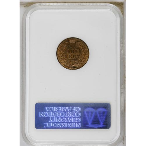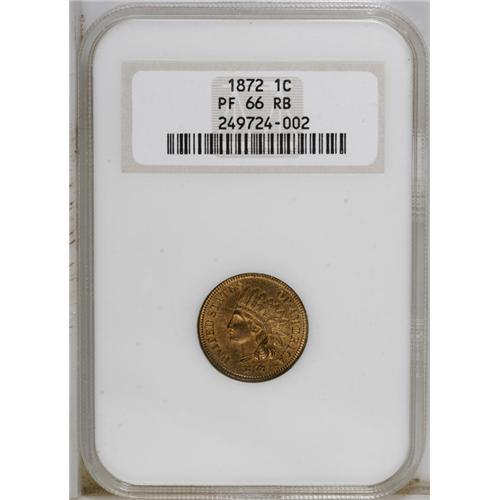 <B>1872<1C> PR66 Red and Brown NGC.</B></I> Fully struck with a beautiful overlay of reddish-gold patina and some purple-red color in the reverse fields. Bothersome contact marks and hairlines are nonexistent. A popular date due to its scarcity as a business strike. From a mintage of just 950 pieces. Census: 9 in 66, 0 finer (9/06).