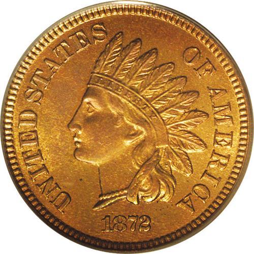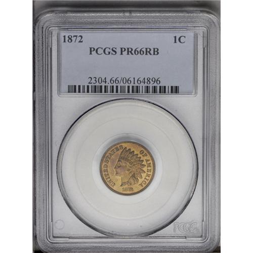 <B>1872<1C> PR66 Red and Brown PCGS.</B></I> A remarkable Gem proof example with nearly full red color on both sides, only beginning to fade to light brown. A few miniscule specks on each side keep this out of the Superb Gem category. It is sharply struck, and the fields are fully reflective although not deeply mirrored. Tied for the finest Red and Brown proof example certified by PCGS. Population: 6 in 66, 0 finer (4/06).