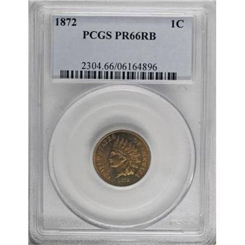 <B>1872 1C PR66 Red and Brown PCGS.</B></I> A remarkable Gem proof example with nearly full red color on both sides, only beginning to fade to light brown. A few minuscule specks are all that keep this out of the Superb Gem category. It is sharply struck, and the fields are fully reflective although not deeply mirrored. Tied for the finest Red and Brown proof example certified by PCGS. Population: 7 in 66, 0 finer (8/07).<BR><BR><B>Coin Engraver:</B> James B. Longacre<BR><BR><b>Shipping:</b> Coins & Currency (<a target="_blank" href="http://www.heritageauctions.com/common/shipping.php">view shipping information</a>)