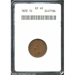 1872 1C XF40 ANACS. Deep tan-green patina. A problem-free Cent that has faint outlines of a few diam
