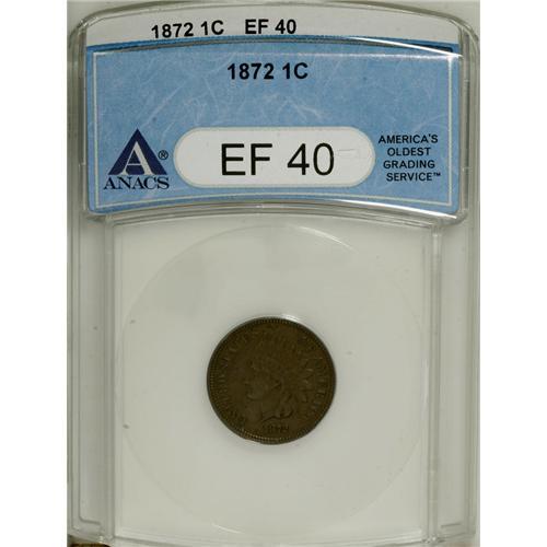 <B>1872 1C XF40 ANACS.</B></I> NGC Census: (18/247). PCGS Population (38/237). Mintage: 4,042,000. Numismedia Wsl. Price: $421. (#2103)<BR><BR><b>Shipping:</b> Coins & Currency (<a target="_blank" href="http://www.heritageauctions.com/common/shipping.php">view shipping information</a>)