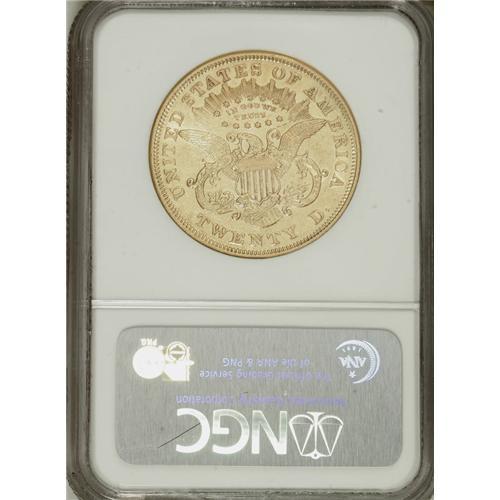 1872 $20 AU50 NGC. NGC Census: (38/427). PCGS Popu