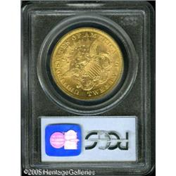 <B>1872 $20 AU58 PCGS.</B></I> Moderately scarce as a date, with strictly Uncirculated pieces being very rare. This is a lovely coin with bright semi-prooflike fields and a sharp strike. Heavily bagmarked on both sides, however.<BR><I>Ex: Superior 1/00</B></I>.<BR><I>From The Richard J. Chouinard Collection of United States Coins, Part Two.</B></I> Lot:9054
