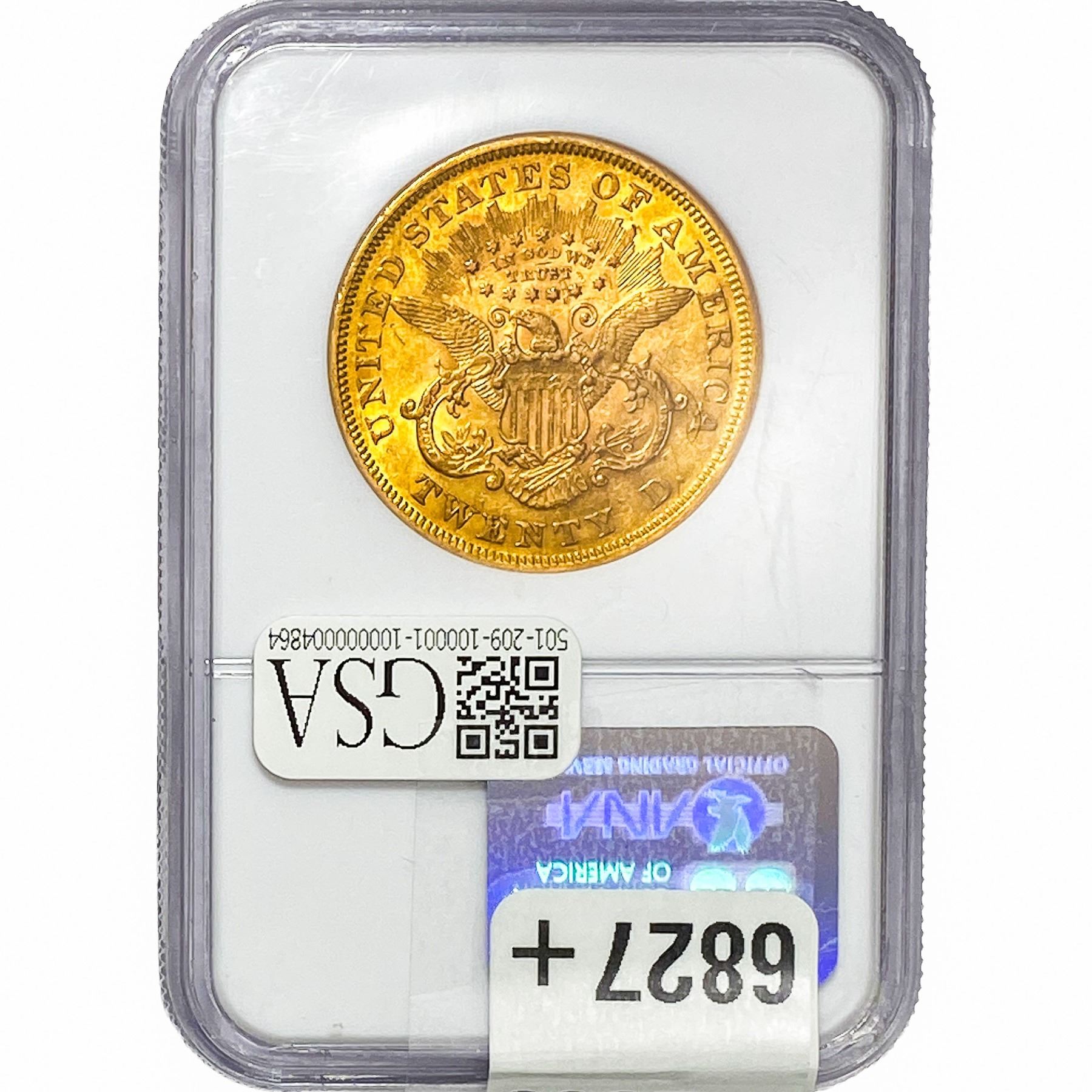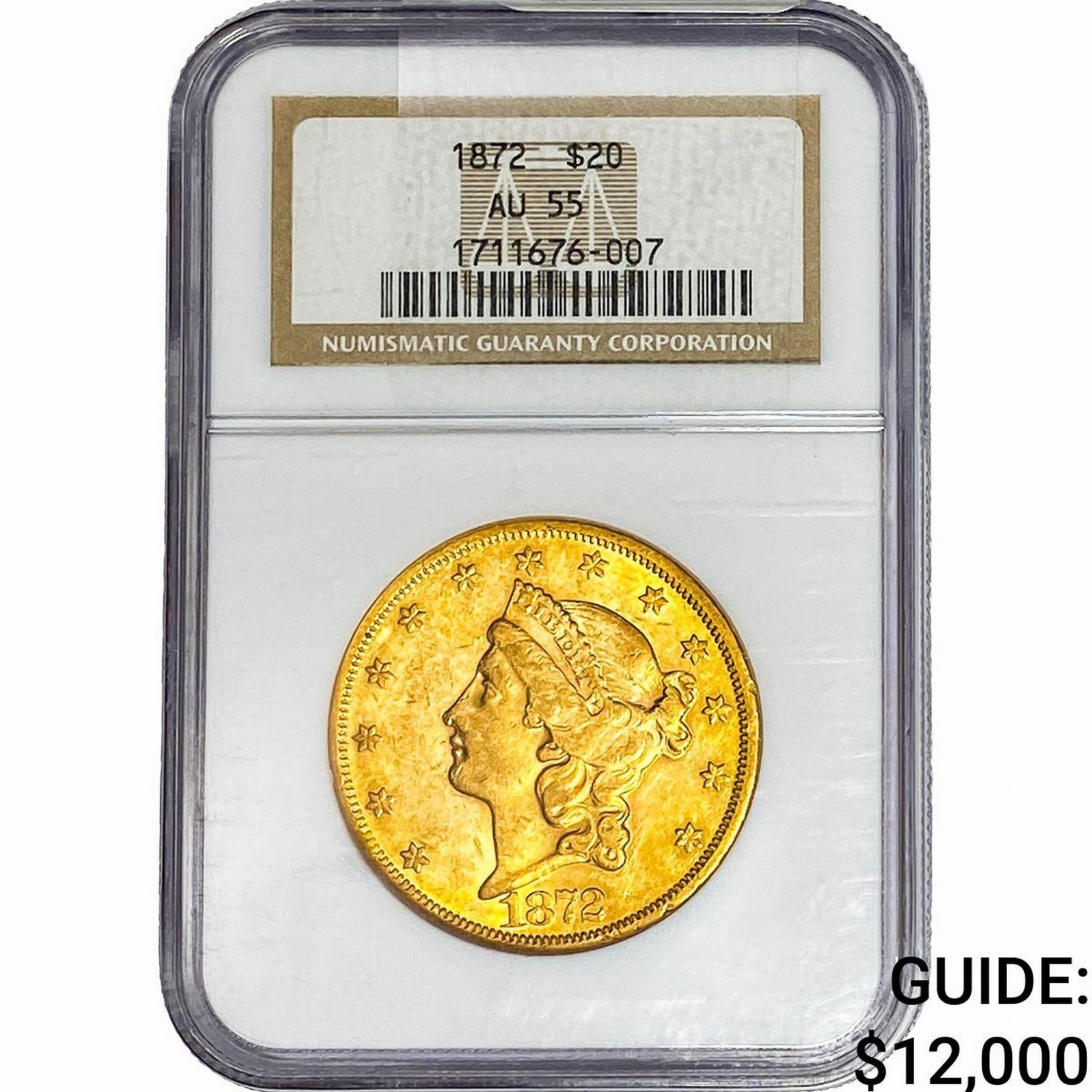 1872 $20 Gold Double Eagle NGC AU55