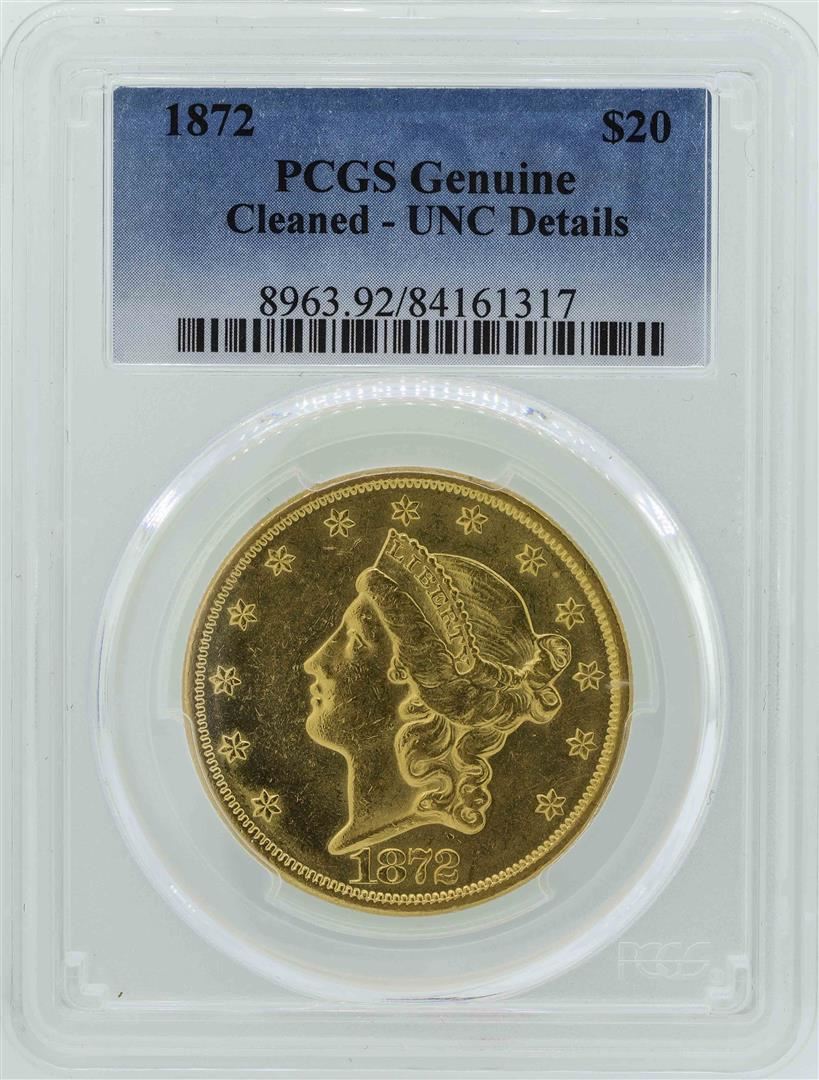 One 1872 $20 Liberty Head Double Eagle Gold Coin PCGS Genuine. PCGS Graded.