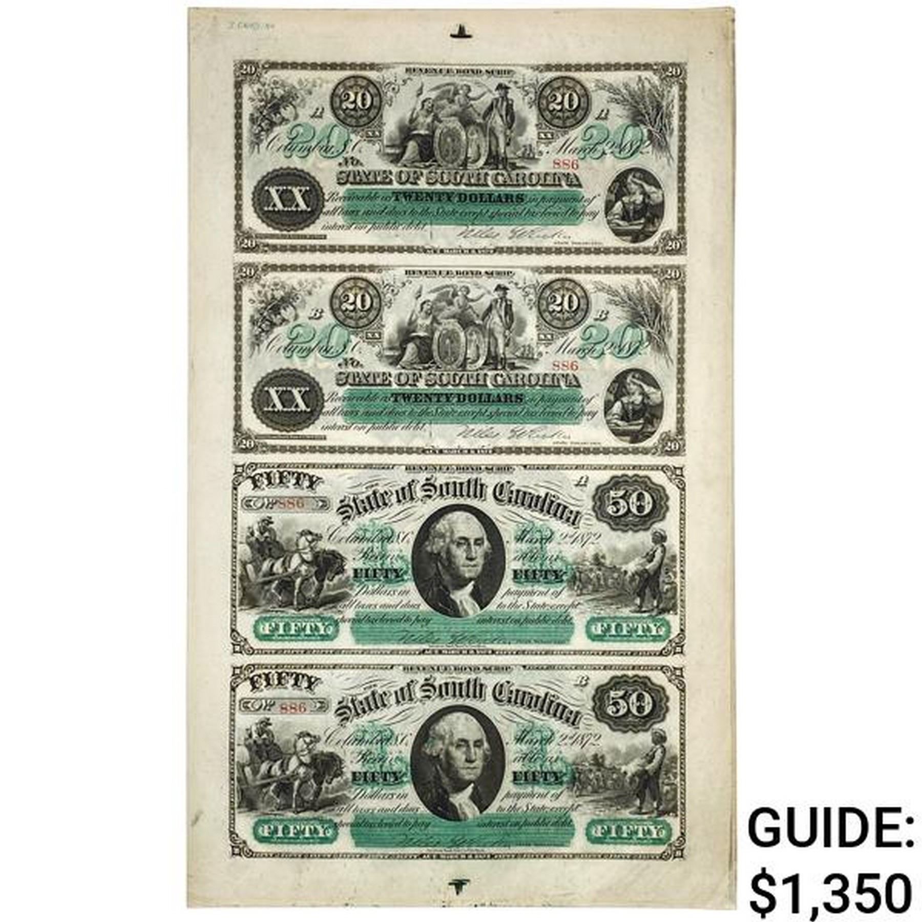 1872 $20's/$50's STATE OF SC OBSOLETES UNC