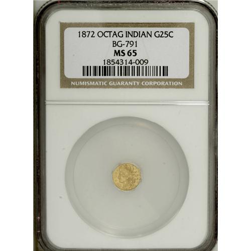 1872 25C Indian Octagonal 25 Cents, BG-791, R.3, MS65