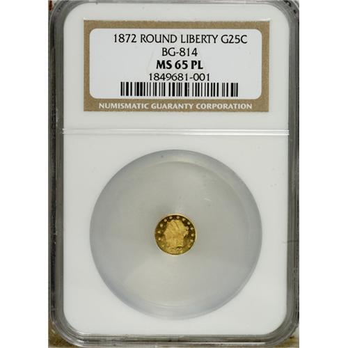 1872 25C Liberty Round 25 Cents, BG-814, High R.5, MS6