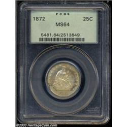 <table><tr><td><TABLE cellSpacing=0 cellPadding=0 width="100%" bgColor=#000000 border=0><TBODY> <TR><TD width="100%"><TABLE cellSpacing=1 cellPadding=3 width="100%" border=0><TBODY><TR><TD width="100%" bgColor=#79735c><FONT face=arial color=#ffffff size=3><B>Description</B> </FONT></TD></TR><TR><TD width="100%" bgColor=#ffffff><FONT face=arial size=2><B>1872 25C MS64 PCGS.</B></I> A very flashy and highly reflective coin that is well defined in most areas. Each side shows subtle, streaky, golden patina that adds even more to the overall eye appeal of this lovely coin. An excellent value for an MS64 piece, and a much scarcer date in the better grades of Mint State with only two other pieces so graded by PCGS and two finer (7/03). </FONT></TD></TR></TBODY></TABLE></TD></TR></TBODY></TABLE><BR><A name=PricesRealized></A><TABLE cellSpacing=0 cellPadding=0 width="100%" bgColor=#000000 border=0><TBODY><TR><TD width="100%"><TABLE cellSpacing=1 cellPadding=3 width="100%" border=0><TBODY><TR><TD width="100%" bgColor=#79735c><A name=PR><FONT face=arial color=#ffffff size=3><B>Previous Prices from Heritage Auctions</B> </FONT></A></TD></TR><TR><TD bgColor=#f6f6ed><TABLE cellSpacing=0 cellPadding=0 width="100%" border=1><TBODY><TR><TD align=middle width="33%"><B>Date</B></TD><TD align=middle width="33%"><B>Service</B></TD><TD align=middle width="33%"><B>Price</B></TD></TR><TR bgColor=whitesmoke><TD width="33%"><B>10/01/1995</B></TD><TD width="33%">PCGS</TD><TD width="33%">$3,080.00</TD></TR></TBODY></TABLE></TD></TR><TR><TD bgColor=#ffffff><FONT face=arial size=1 ?>PLEASE NOTE: All prices realized reflect the final hammer price PLUS the buyer's premium in auctions that charge a buyer's premium. Each item has a notation at the top of the listing indicating whether that lot included a buyer's premium. Example: A item that sells with a final hammer price of $100 and a 20% buyer's premium will display with a price realized of $120. All information listed is intended to be as accurate as possible, but errors are possible. Please use this guide carefully and inform us of any inaccuracies. </FONT></TD></TR></TBODY></TABLE></TD></TR></TBODY></TABLE><BR><TABLE cellSpacing=0 cellPadding=0 width="100%" bgColor=#000000 border=0><TBODY><TR><TD width="100%"><TABLE cellSpacing=1 cellPadding=3 width="100%" border=0><TBODY><TR><TD width="100%" bgColor=#79735c colSpan=6><FONT face=arial color=#ffffff size=3><B>Price Guide*</B> </FONT></TD></TR><TR bgColor=#f6f6ed><TD align=middle><B>Grade</B> </TD><TD align=middle><B>Coin World<BR>(Trends)</B> </TD><TD align=middle><B>Numismedia<BR>Retail</B> </TD><TD align=middle><B>Numismedia<BR>Wholesale</B> </TD><TD align=middle><B>Coin<BR>Universe</B> </TD><TD align=middle><B>Heritage<BR>Value Index</B> </TD></TR><TR bgColor=#ffffff><TD align=middle>63</TD><TD align=right>$1,975.00</TD><TD align=right>---</TD><TD align=right>---</TD><TD align=right>$1,575.00</TD><TD align=right>$1,188.33</TD></TR><TR style="FONT-WEIGHT: bold" bgColor=#cccfdd><TD align=middle>64</TD><TD align=right>$3,900.00</TD><TD align=right>---</TD><TD align=right>---</TD><TD align=right>$3,800.00</TD><TD align=right>$2,576.67</TD></TR><TR bgColor=#ffffff><TD align=middle>65</TD><TD align=right>---</TD><TD align=right>---</TD><TD align=right>---</TD><TD align=right>---</TD><TD align=right>$4,680.00</TD></TR><TR bgColor=#ffffff><TD colSpan=6><FONT size=1>*All information listed is intended to be as accurate as possible, but errors are possible. No item may be returned or refused based on this information which is provided as a service to our customers. You should contact each pricing source directly to determine the accuracy of this information. </FONT></TD></TR></TBODY></TABLE></TD></TR></TBODY></TABLE><BR><TABLE cellSpacing=0 cellPadding=0 width="100%" bgColor=#000000 border=0><TBODY><TR><TD width="100%"><TABLE cellSpacing=1 cellPadding=3 width="100%" border=0><TBODY><TR><TD width="100%" bgColor=#79735c><FONT face=arial color=#ffffff size=3><B>Population Guide</B> </FONT></TD></TR><TR bgColor=#ffffff><TD align=middle><!-- Begin Output of Population Grid--><TABLE cellSpacing=0 cellPadding=0 width="100%" border=0><TBODY><TR><TD vAlign=center><TABLE cellSpacing=0 width="100%" border=1 cellsadding="3"><TBODY><TR><TD vAlign=center><TABLE cellSpacing=0 cellPadding=3 width="100%" border=1><TBODY><TR><TD vAlign=center align=middle bgColor=#f0f1e8 colSpan=2 <CENTER><FONT face=Arial size=2><B>PCGS Pop </B></FONT><CENTER></CENTER></TD><TD vAlign=center align=middle bgColor=#f0f1e8 colSpan=2><CENTER><FONT face=Arial size=2><B>NGC Pop</B></CENTER></FONT></TD></TR><TR><TD vAlign=center><FONT face=Arial size=2>(64)</FONT> </TD><TD vAlign=center align=right><FONT face=Arial size=2>3</FONT> </TD><TD vAlign=center><FONT face=Arial size=2>(64)</FONT> </TD><TD vAlign=center align=right><FONT face=Arial size=2>7</FONT> </TD></TR><TR><TD vAlign=center><FONT face=Arial size=2>(>64)</FONT> </TD><TD vAlign=center align=right><FONT face=Arial size=2>2</FONT> </TD><TD vAlign=center><FONT face=Arial size=2>(>64)</FONT> </TD><TD vAlign=center align=right><FONT face=Arial size=2>3</FONT> </TD></TR></TBODY></TABLE></TD></TR></TBODY></TABLE></TD></TR></TBODY></TABLE><!-- End Output of Population Grid--></TD></TR></TBODY></TABLE></TD></TR></TBODY></TABLE><BR><TABLE cellSpacing=0 cellPadding=0 width="100%" bgColor=#000000 border=0><TBODY><TR> Important notice: Heritage usually auctions material at the rate of 200-250 lots per hour. On some occasions eBay Live bid software or the Internet may not be able to keep up with the pace of the auction. We recommend placing a realistic absentee bid now as insurance to avoid disappointment. Occasionally the auctioneer may eliminate or reject an eBay Live bid, and the auctioneer may also reopen a lot after the close of the eBay live bidding (usually because we missed an audience bid), and may reject your bid even if it shows you as the winning bidder. By bidding via eBay Live, you agree that Heritage ma