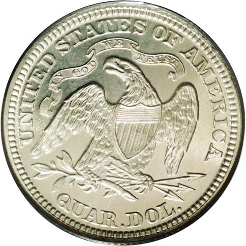 <B>1872<25C> PR65 Cameo PCGS.</B></I> Only 950 proofs were struck of the 1872, and it is a very scarce item above the PR63 level. This piece is snow-white. The devices are heavily frosted and contrast strongly against the deeply mirrored proof fields. The surfaces are near technical perfection with the only mentionable defect being a small lintmark in the right obverse field. Population: 2 in 65 Cameo, 3 finer (10/03).