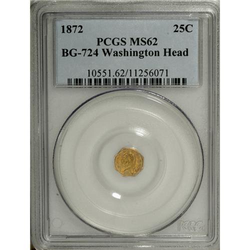 1872 25C Washington Octagonal 25 Cents, BG-724, High R