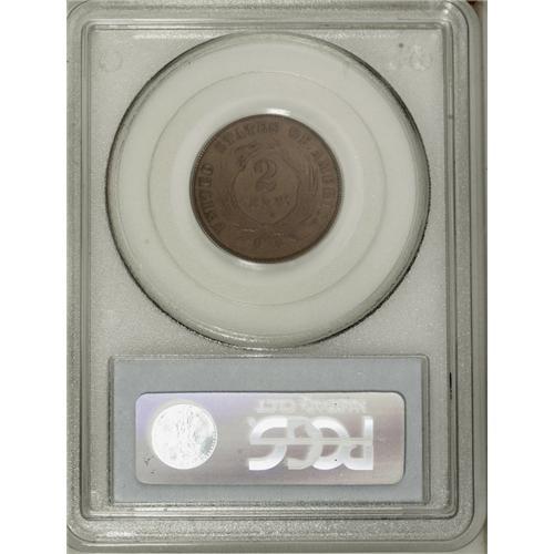 <B>1872<2C> AU55 PCGS.</B></I> Well detailed with rich mahogany-brown color and satiny surfaces. Moderate highpoint wear and a few scattered abrasions define the grade of the piece.