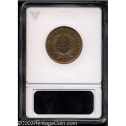 <table><tr><td><TABLE cellSpacing=0 cellPadding=0 width="100%" bgColor=#000000 border=0><TBODY> <TR><TD width="100%"><TABLE cellSpacing=1 cellPadding=3 width="100%" border=0><TBODY><TR><TD width="100%" bgColor=#79735c><FONT face=arial color=#ffffff size=3><B>Description</B> </FONT></TD></TR><TR><TD width="100%" bgColor=#ffffff><FONT face=arial size=2><B>1872 2C --Cleaned--ANACS. Net PR60.</B></I> Recolored in bright peach and gold hues. A well struck specimen with faint hairlines below CENTS.<BR><I>From The New Millennium Collection.</B></I> </FONT></TD></TR></TBODY></TABLE></TD></TR></TBODY></TABLE><BR><A name=PricesRealized></A><TABLE cellSpacing=0 cellPadding=0 width="100%" bgColor=#000000 border=0><TBODY><TR><TD width="100%"><TABLE cellSpacing=1 cellPadding=3 width="100%" border=0><TBODY><TR><TD width="100%" bgColor=#79735c><A name=PR><FONT face=arial color=#ffffff size=3><B>Previous Prices from Heritage Auctions</B> </FONT></A></TD></TR><TR><TD bgColor=#f6f6ed>No Prior Data Recorded </TD></TR><TR><TD bgColor=#ffffff><FONT face=arial size=1 ?>PLEASE NOTE: All prices realized reflect the final hammer price PLUS the buyer's premium in auctions that charge a buyer's premium. Each item has a notation at the top of the listing indicating whether that lot included a buyer's premium. Example: A item that sells with a final hammer price of $100 and a 20% buyer's premium will display with a price realized of $120. All information listed is intended to be as accurate as possible, but errors are possible. Please use this guide carefully and inform us of any inaccuracies. </FONT></TD></TR></TBODY></TABLE></TD></TR></TBODY></TABLE><BR><TABLE cellSpacing=0 cellPadding=0 width="100%" bgColor=#000000 border=0><TBODY><TR><TD width="100%"><TABLE cellSpacing=1 cellPadding=3 width="100%" border=0><TBODY><TR><TD width="100%" bgColor=#79735c colSpan=6><FONT face=arial color=#ffffff size=3><B>Price Guide*</B> </FONT></TD></TR><TR bgColor=#f6f6ed><TD align=middle><B>Grade</B> </TD><TD align=middle><B>Coin World<BR>(Trends)</B> </TD><TD align=middle><B>Numismedia<BR>Retail</B> </TD><TD align=middle><B>Numismedia<BR>Wholesale</B> </TD><TD align=middle><B>Coin<BR>Universe</B> </TD><TD align=middle><B>Heritage<BR>Value Index</B> </TD></TR><TR bgColor=#ffffff><TD align=middle>58</TD><TD align=right>---</TD><TD align=right>---</TD><TD align=right>---</TD><TD align=right>---</TD><TD align=right>$203.48</TD></TR><TR style="FONT-WEIGHT: bold" bgColor=#cccfdd><TD align=middle>60</TD><TD align=right>---</TD><TD align=right>---</TD><TD align=right>---</TD><TD align=right>$280.00</TD><TD align=right>$210.50</TD></TR><TR bgColor=#ffffff><TD align=middle>61</TD><TD align=right>---</TD><TD align=right>---</TD><TD align=right>---</TD><TD align=right>---</TD><TD align=right>$233.08</TD></TR><TR bgColor=#ffffff><TD colSpan=6><FONT size=1>*All information listed is intended to be as accurate as possible, but errors are possible. No item may be returned or refused based on this information which is provided as a service to our customers. You should contact each pricing source directly to determine the accuracy of this information. </FONT></TD></TR></TBODY></TABLE></TD></TR></TBODY></TABLE><BR><TABLE cellSpacing=0 cellPadding=0 width="100%" bgColor=#000000 border=0><TBODY><TR><TD width="100%"><TABLE cellSpacing=1 cellPadding=3 width="100%" border=0><TBODY><TR><TD width="100%" bgColor=#79735c><FONT face=arial color=#ffffff size=3><B>Population Guide</B> </FONT></TD></TR><TR bgColor=#ffffff><TD align=middle><!-- Begin Output of Population Grid--><TABLE cellSpacing=0 cellPadding=0 width="100%" border=0><TBODY><TR><TD vAlign=center><TABLE cellSpacing=0 width="100%" border=1 cellsadding="3"><TBODY><TR><TD vAlign=center><TABLE cellSpacing=0 cellPadding=3 width="100%" border=1><TBODY><TR><TD vAlign=center align=middle bgColor=#f0f1e8 colSpan=2 <CENTER><FONT face=Arial size=2><B>PCGS Pop </B></FONT><CENTER></CENTER></TD><TD vAlign=center align=middle bgColor=#f0f1e8 colSpan=2><CENTER><FONT face=Arial size=2><B>NGC Pop</B></CENTER></FONT></TD></TR><TR><TD vAlign=center><FONT face=Arial size=2>(60)</FONT> </TD><TD vAlign=center align=right><FONT face=Arial size=2>0</FONT> </TD><TD vAlign=center><FONT face=Arial size=2>(60)</FONT> </TD><TD vAlign=center align=right><FONT face=Arial size=2>0</FONT> </TD></TR><TR><TD vAlign=center><FONT face=Arial size=2>(>60)</FONT> </TD><TD vAlign=center align=right><FONT face=Arial size=2>44</FONT> </TD><TD vAlign=center><FONT face=Arial size=2>(>60)</FONT> </TD><TD vAlign=center align=right><FONT face=Arial size=2>56</FONT> </TD></TR></TBODY></TABLE></TD></TR></TBODY></TABLE></TD></TR></TBODY></TABLE><!-- End Output of Population Grid--></TD></TR></TBODY></TABLE></TD></TR></TBODY></TABLE><BR><TABLE cellSpacing=0 cellPadding=0 width="100%" bgColor=#000000 border=0><TBODY><TR> Important notice: Heritage usually auctions material at the rate of 200-250 lots per hour. On some occasions eBay Live bid software or the Internet may not be able to keep up with the pace of the auction. We recommend placing a realistic absentee bid now as insurance to avoid disappointment. Occasionally the auctioneer may eliminate or reject an eBay Live bid, and the auctioneer may also reopen a lot after the close of the eBay live bidding (usually because we missed an audience bid), and may reject your bid even if it shows you as the winning bidder. By bidding via eBay Live, you agree that Heritage may award the lot to another bidder at its sole discretion under the circumstances described above or any other reasonable circumstances. Also please note that all Heritage lots purchased through eBay Live carry a 20% Buyer's Premium. Please make sure you read the Terms and Conditions before you bid.</TD></TR></TBODY></TABLE></TD></TR></TBODY></TABLE>