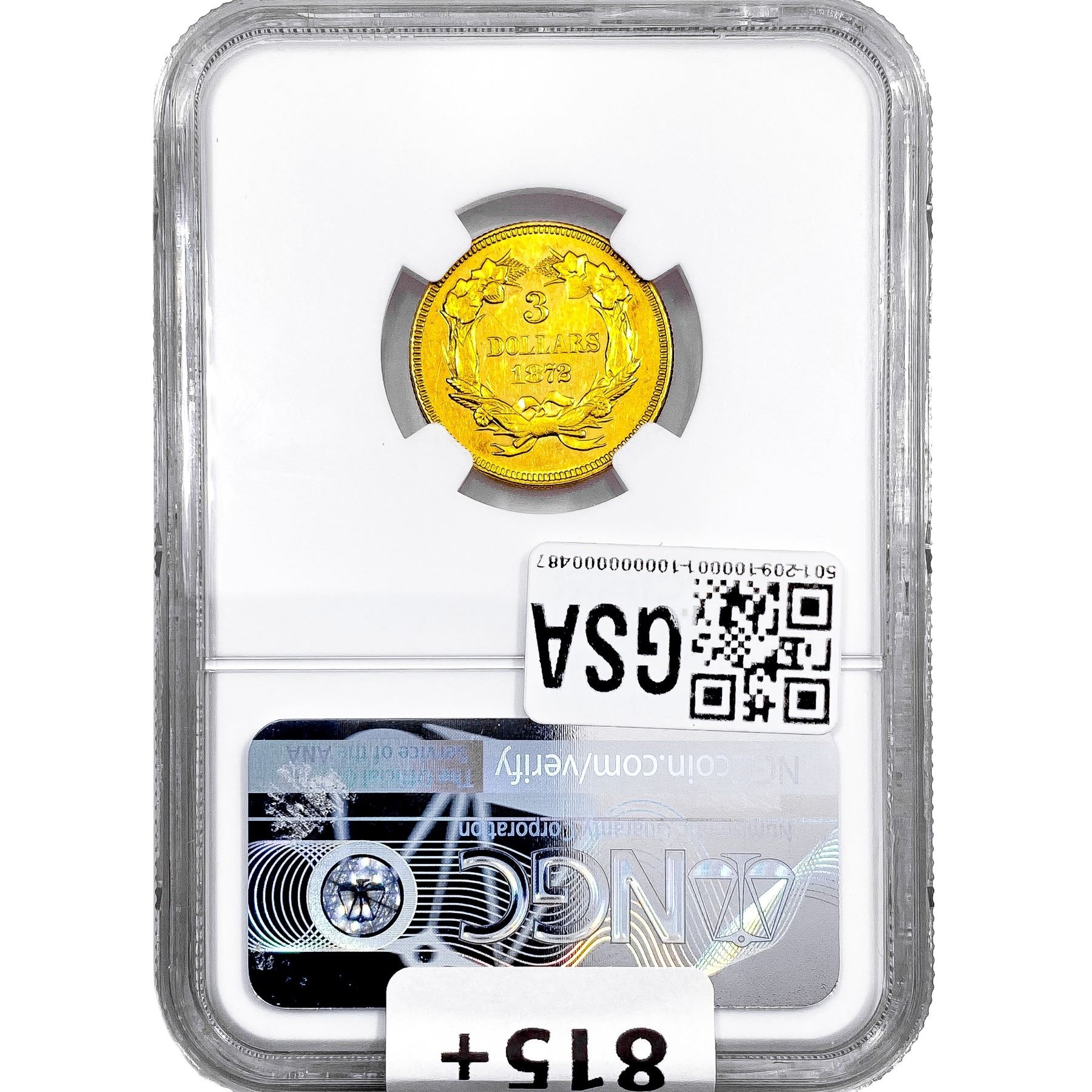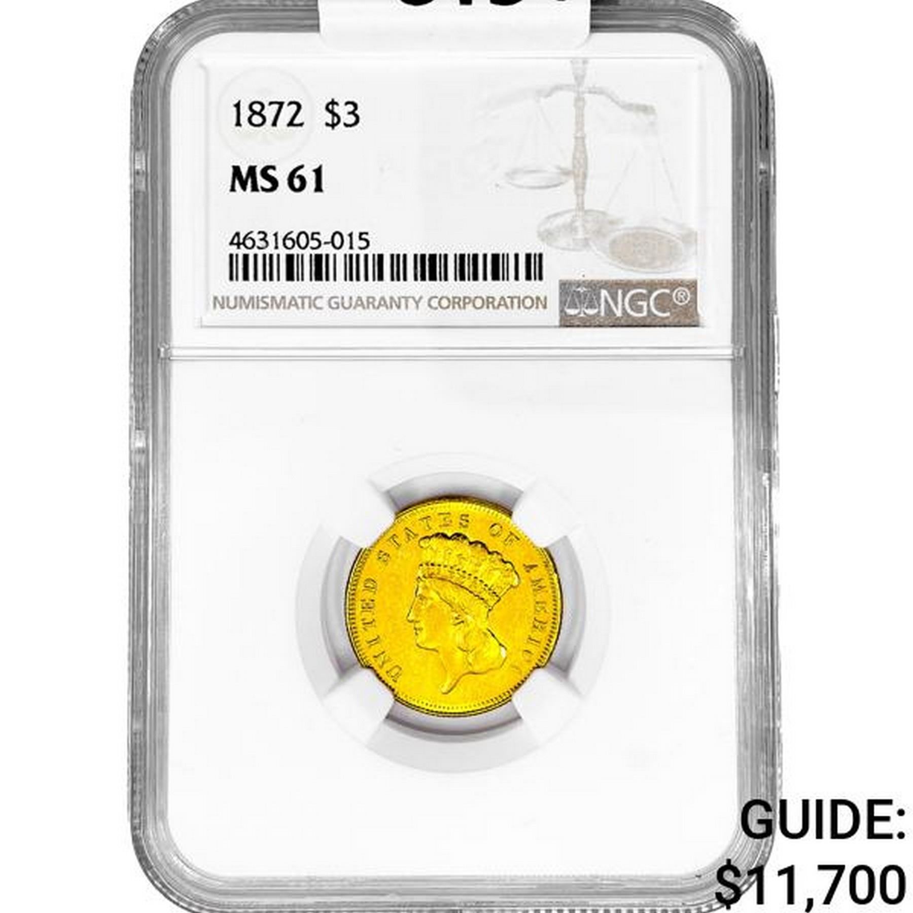 1872 $3 Gold Piece NGC MS61