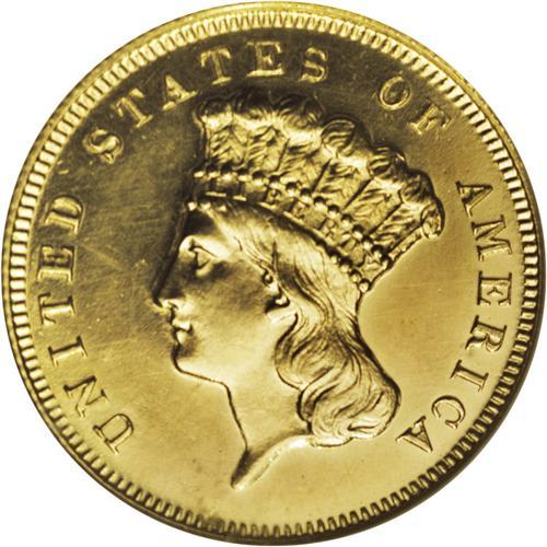 <B>1872 $3 PR62 ANACS.</B></I> The proof 1872 is a great rarity. Only 30 proofs were struck, in addition to just 2,000 business strikes. This well struck representative has noticeable frost on the portrait and the wreath, although the piece is undesignated as Cameo by ANACS. A few faint field hairlines limit the grade. A prime opportunity for the alert rare gold specialist.<BR><BR><b>Shipping:</b> Coin/Currency (<a target="_blank" href="http://www.heritageauctions.com/common/shipping.php">view shipping information</a>)