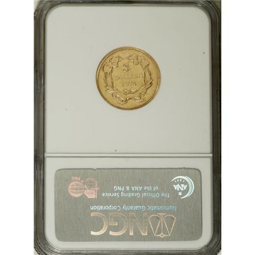 <B>1872 $3 XF45 NGC.</B></I> This is a rare date that is seldom found in any grade. Only 2,000 business strikes were originally minted and few have survived. Prices remain at reasonable levels only because few collectors have taken on the challenge of a date set of these coins.<BR><BR><b>Shipping:</b> Coins & Currency (<a target="_blank" href="http://www.heritageauctions.com/common/shipping.php">view shipping information</a>)