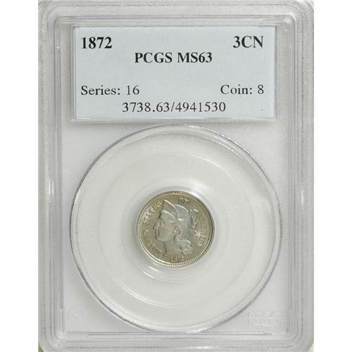 1872 3CN MS63 PCGS. PCGS Population (47/64). NGC C