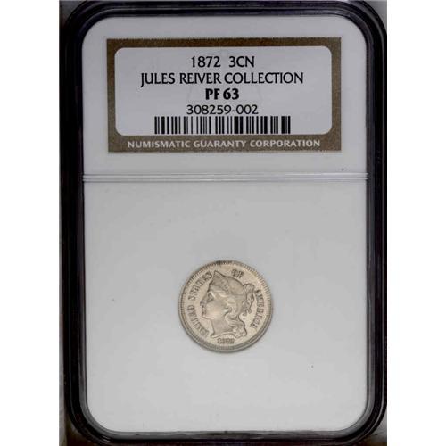 <B>1872<3CN> PR63 NGC.</B></I> Reflective pale gray surfaces with hints of champagne toning.