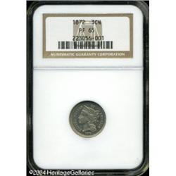 1872 3CN PR65 NGC. The word LIBERTY is not fully s <B>1872 3CN PR65 NGC.</B></I> The word LIBERTY is not fully struck, otherwise the light-olive surfaces are well defined and free of hairlines or handling marks. A scarcer issue that is somewhat elusive in Gem condition. <BR><BR><B>Important notice:</B> Heritage usually auctions material at the rate of 200-250 lots per hour. On some occasions eBay Live bid software or the Internet may not be able to keep up with the pace of the auction. We recommend placing a realistic absentee bid now as insurance to avoid disappointment. Occasionally the auctioneer may eliminate or reject an eBay Live bid, and the auctioneer may also reopen a lot after the close of the eBay live bidding (usually because we missed an audience bid), and may reject your bid even if it shows you as the winning bidder. By bidding via eBay Live, you agree that Heritage may award the lot to another bidder at its sole discretion under the circumstances described above or any other reasonable circumstances. Since eBay bids are not shown to us until we open the lot on the floor, we treat those bids just like floor bids. In most cases the floor responds before the eBay bid is presented to us, due to Internet lag time, so for consistency we have made it a policy that floor bids are always considered first over tie eBay live bids. Also please note that all Heritage lots purchased through eBay Live carry a 20% Buyer's Premium. Please make sure you read the Terms and Conditions before you bid. This lot is being auctioned in conjunction with a live floor auction by Heritage Galleries & Auctioneers. All final auction and invoice information will be supplied by Heritage Galleries & Auctioneers, and all other information should be considered preliminary. Lot:5497