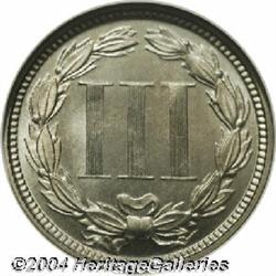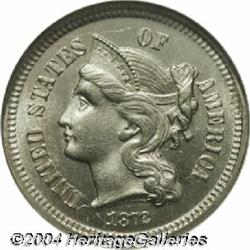 <B>1872<3CN> PR65 NGC.</B></I> An exceptionally appealing and crisply struck representative with an essentially untoned appearance with lightly contrasted fields and devices. An unfortunate contact mark to the left of the first digit of the date limits the grade. <BR><BR><B>Important notice:</B> Heritage usually auctions material at the rate of 200-250 lots per hour. On some occasions eBay Live bid software or the Internet may not be able to keep up with the pace of the auction. We recommend placing a realistic absentee bid now as insurance to avoid disappointment. Occasionally the auctioneer may eliminate or reject an eBay Live bid, and the auctioneer may also reopen a lot after the close of the eBay live bidding (usually because we missed an audience bid), and may reject your bid even if it shows you as the winning bidder. By bidding via eBay Live, you agree that Heritage may award the lot to another bidder at its sole discretion under the circumstances described above or any other reasonable circumstances. Since eBay bids are not shown to us until we open the lot on the floor, we treat those bids just like floor bids. In most cases the floor responds before the eBay bid is presented to us, due to Internet lag time, so for consistency we have made it a policy that floor bids are always considered first over tie eBay live bids. Also please note that all Heritage lots purchased through eBay Live carry a 20% Buyer's Premium. Please make sure you read the Terms and Conditions before you bid.