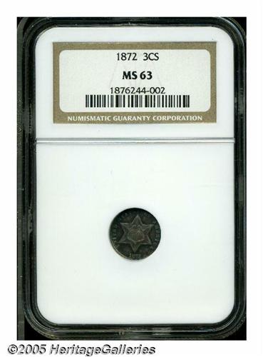 1872 3CS MS63 NGC. A spectacularly toned example,